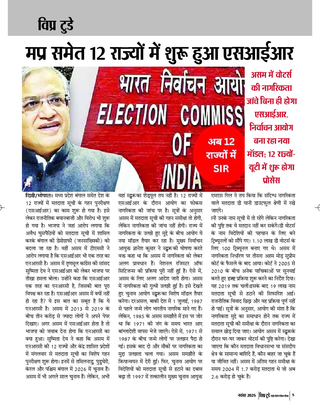 मप्र समेत 12 राज्यों में शुरू हुआ एसआईआर